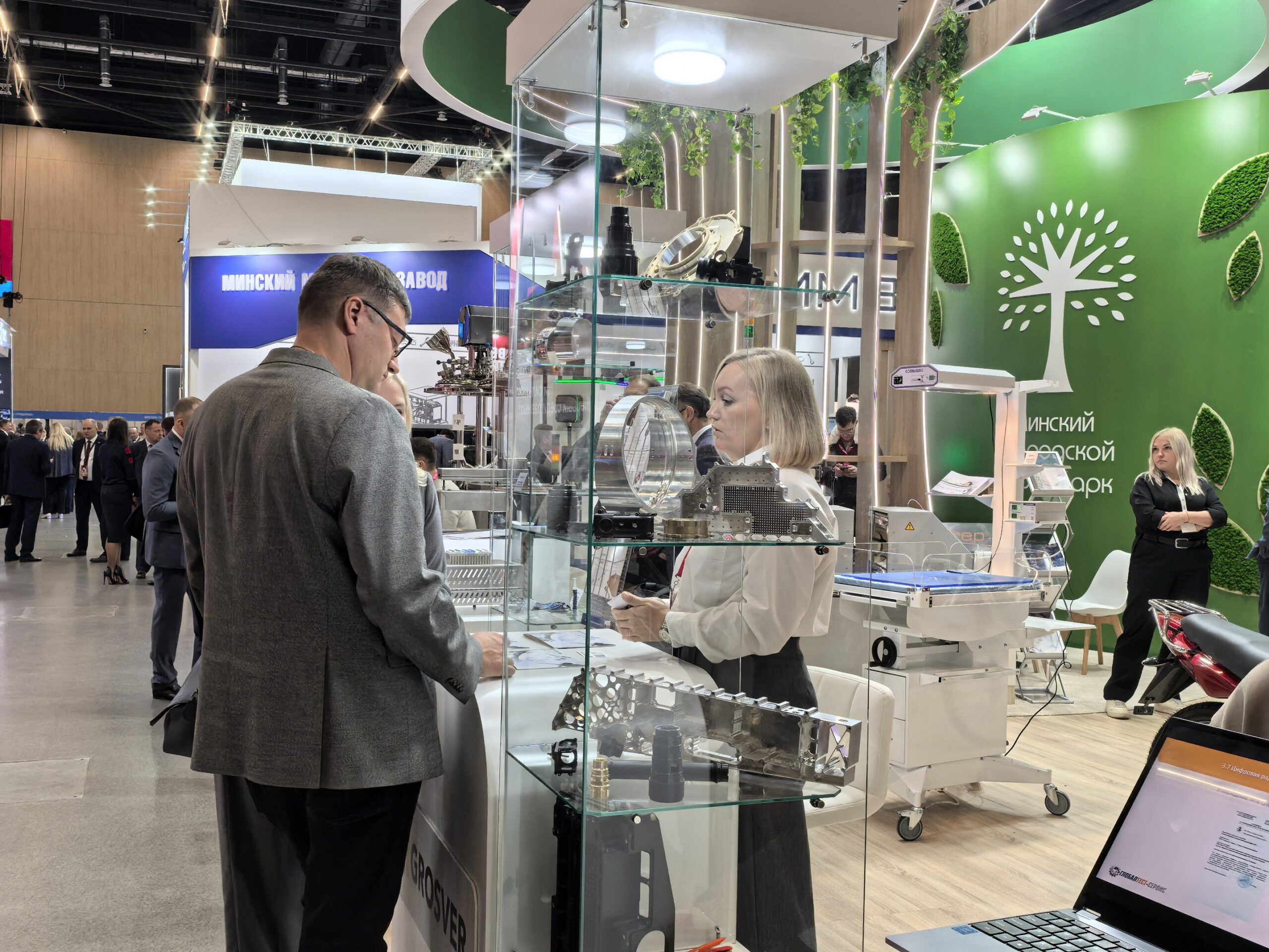 На экспозиции был представлен коллективный стенд инновационных научно-технических разработок резидентов Минского городского технопарка Выставка продукции резидентов технопарка располагалась в двух локациях: в выставочном павильоне и на открытой площадке.